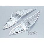 【特長】スポーツ走行やレース時の使用に最適な滑り止めフットレストです。特に切り返し等で安定した荷重移動を実現。ドレスアップにも最適です。○左右1SET。○装着用タッピングビス付属。○幅65mm/全長170mm。汎用。●ジョグ/-ZR,ライブディオ等ほとんどのスクーターに取り付け可能。