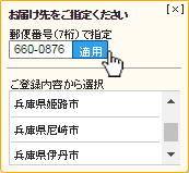 <span class="mropopupContents__txt">②&nbsp;パネルが表示されます。郵便番号を入力して適用ボタン、または、リストの項目をクリックします。</span>