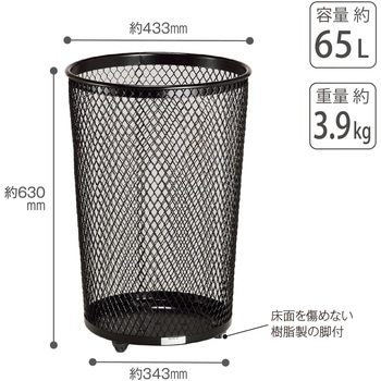 シンプルな丸型屑入です。脚は樹脂製なのでサビず、タイルなどの床面を傷めません。