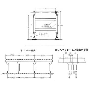 3.詳細はフレームの負荷能力より搬送物の重量をm当りの重量に換算して許容荷重以下のスタンドピッチを選定して下さい。