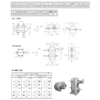 モートル停止までスリップしない定出力特性。中低速変速用でよこ形・たて形の2タイプ。メンテナンスフリーの無給油構造。伝達容量:SP型0.4~2.2KW SPV型0.4~2.2KW出力特性:定出力適正入力軸回転数:500~800rpm出力軸回転数:入力軸回転数×1/2~2倍使用ベルト:グリップVベルト