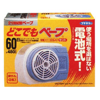 使う場所を選ばない電池式ベープ。コンセント不要の電池式。室内でも屋外でも使用OK。使いやすく、オン、オフの視認性がよいパイロットランプ付。熱を発生させずに、安心、清潔。広範囲に揮散する独自のファン設計。