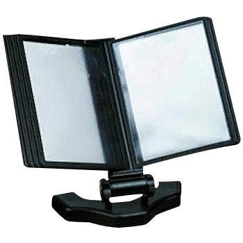 本をめくる感覚で情報を見られるサインホルダーです。カタログの説明や複数ページのチラシを整理して、美しく見せることができます。A6はがきサイズを12枚収納可能、縦置き・横置きどちらでも使用できます。卓上メニューとして、レストラン等でも利用できます。ベース(足元)部分には重さがあり、また底面の滑り止め加工により安定感があります。