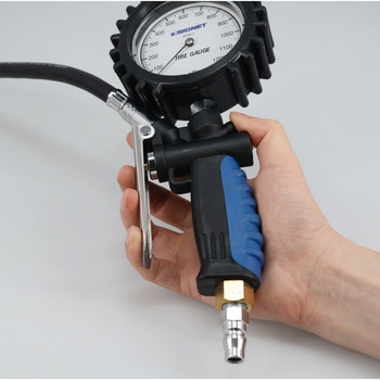 乗用車、トラックのタイヤ空気圧が計れるダブルチャック採用。(アルミホイールなどの狭い箇所でも計れる小口径ダブルチャック)