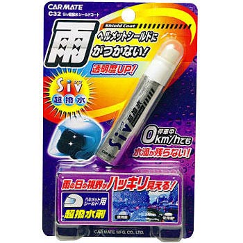 確かに、雨水はない状態になり、施工も簡単ですが耐久性がなく、ヘルメットを脱ぐ時や、ホルダーに掛けるときに、少しでも、シールドに触れるとコーティングが取れます。
