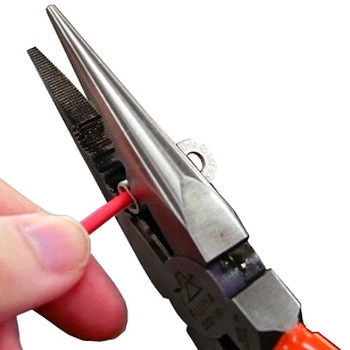 従来のラジオペンチの機能を損なわず、コードの割込み、簡易圧着、線材の皮むき、小ネジやナット等をくわえ回すなど、幅広くご使用いただける万能工具です。