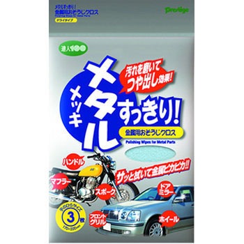 こするだけでピカピカ!超微粒子の研磨剤とツヤ出し剤配合の特殊ドライクロス!手軽さが人気です!超微粒子の研磨剤とツヤ出し剤を配合した特殊なドライクロスです。汚れの気になる金属部をクロスでこするだけで表面がピカピカになります。バイクや自動車のマフラー・ホイール・エンブレム等の金属部やメッキ部に最適です。