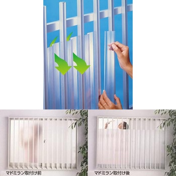 窓やベランダ等の格子棒に簡単に貼り付けられる貼着方式の目かくし材です。