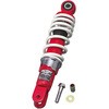 熱ダレしにくい窒素ガス封入タイプ。伸側/圧側共にダンピングレートを高次元にセッティング。優れたロードホールディング性を発揮。バネレートは、街乗りを重視した若干硬めのハードタイプ(赤/白、白/白の2色)と、路面追従性を重視した、ハイグリップタイプ(ゴールド/レッドの1色)。ハード対比85%のバネレート)の2タイプを設定。リヤタイヤ、エアクリーナーケースなどとの接触を避けるため、スプリング取付を短くしました。