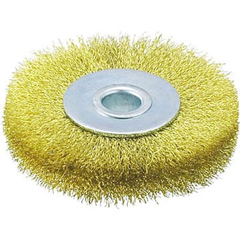 ブラシ形状が円盤型で、外面に向かって放射状に毛が植わっています。円盤状のブラシの中心に10mmの穴が開いていて工具、機械等に同径の軸がついていれば取り付けが可能です。