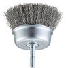 ブラシ形状がカップ型で、下面に向かって毛が植わっています。ステンレス線なので金属面等にサビが出にくいです。電動インパクトドライバで使用する為、ワンタッチで取り外しができます。比較的広い面の作業向きです。