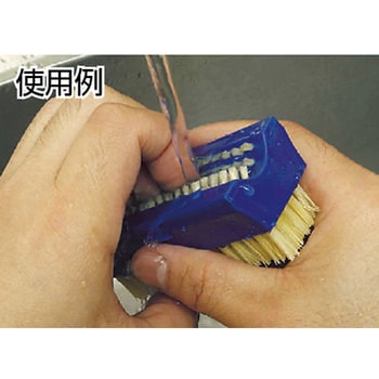 上部のアーチ植毛部分が爪の間の汚れ落としに効果的です。カビ等が付きにくいポリプロピレン(PP)を台の素材として採用しています。
