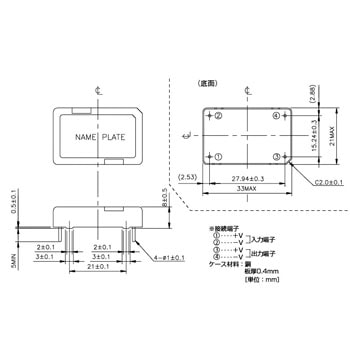 入力電圧範囲(V)4.5~7.2DC定格出力電圧(V)5最大出力電力(W)1.5質量(g)15出力電流(A)最大0.3寸法(幅W×高さH×奥行D)(mm)33×8×21材質(ケース)銅保存温度(℃)-40~+85冷却方式自然空冷絶縁抵抗(MΩ)出力-ケース間/100以上(500VDC/25℃、70%RH)動作温湿度範囲20%~95%RH保存温湿度範囲20%~95%RH動作周囲温度(℃)-20~+71耐衝撃(m/s2)196.1以下入力変動最大20mV負荷変動最大30mV耐振動全振幅1.5mm、周波数10~55~10Hzを1サイクル1分間とし、X/Y/Z方向各2時間、(Max.88.3m/s2)入力電流(A)0.48過電流保護105%~/フの字垂下方式自動復帰型出力リップルノイズ電圧最大120mV効率63%出力電圧精度最大±5%耐電圧(V/sec)入力-出力・入力-ケース間/AC500(5mA)内容量1台
