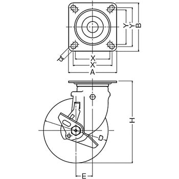 513M・自在車ストッパー付(鉄板ホイール・ゴム巻(B入)車輪)