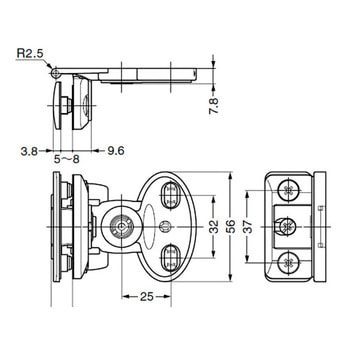 キャッチ付のガラス用蝶番です。取り付け後に扉の3次元調整が可能です(上下±2 mm、左右2 mm、前後±2 mm)。丁番の出っ張りが少なく、スペースを有効に活用できます。軸部にポリアミド製ワッシャーを使用しているため動きが滑らかです。