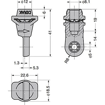 別売のラウンドロッド用アダプターを使用して、ロッドラッチ、3点カム、カムアダプターに対応するアダプター仕様と、3点カム専用タイプがあります。