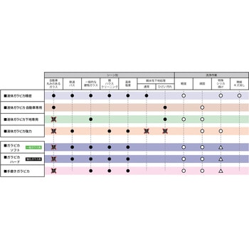 特に頑固なうろこ状汚れを強い研磨力で強力に分解します。また、色焼け・白濁ガラスの透明回復が可能です。