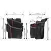ポケットが斜めカットで手を入れやすく、前屈みになっても中身が落ちにくい腰袋です。漆黒の生地と緋色(赤色)の生地を貼り合わせた生地を使用しており、裏地もおしゃれです。独自の縫製技術で底抜けしにくく、丈夫で長持ちです。底部に釘の頭が突き抜けないメッシュ式水抜き穴付きです。