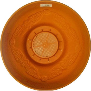 テラコッタの風合いを持ったプラスチック製鉢です。表面にシボ加工が施してあり手作り感・高級感があります。フランジ部を厚くして重厚感を出しました。