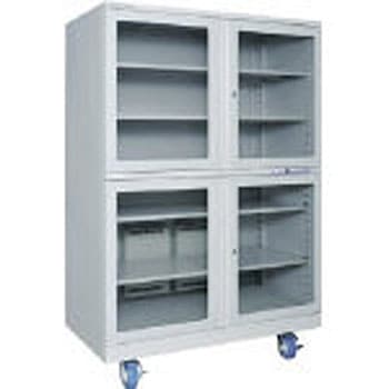 強力最新式除湿電子ユニット内蔵です。Φ130mmウレタン製キャスター、アース線(1MΩ)、カギ付です。静電容量式センサーを採用しています(デジタルパネル湿度表示)。扉開閉の頻繁な工程に最適です。静電気対策 ESD-IEC61340-5-1に準拠しています。
