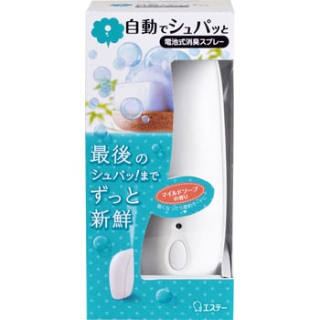 光センサーでスプレー回数を調節しながら、一定間隔で消臭芳香成分をスプレーするので、最後のシュパッ!までいつでも新鮮な香りと効果を実感できる、電池式オートスプレータイプの消臭芳香剤。