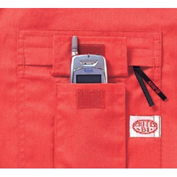 ファスナー付き胸ポケットのファスナーを隠すオーバーフラップタイプ、携帯電話専用ポケットや、オートバイロゴ入りファスナータブを採用。