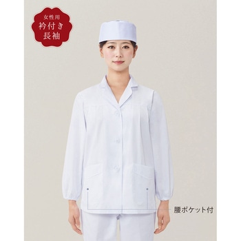 厨房や給食センターなど、衛生管理にこだわる現場に最適な、衿付きの女性用調理白衣です。洗濯を繰り返しても抗菌効果が持続する『フレッシュエリアR』シリーズで、衛生的な状態をキープ。小ぶりなテーラー衿が上品で清潔感のある印象を与えます。袖口はゴム入りで、水仕事や異物混入対策にも配慮しています。両腰ポケット付きで、ちょっとした小物の収納にも便利です。