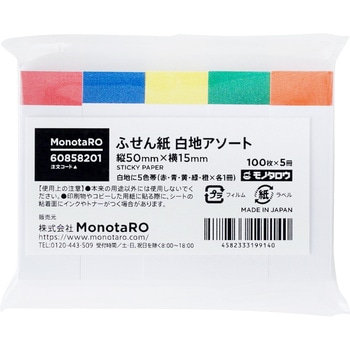 他社の同等品より安く購入できて満足です。粘着力も問題なく、白地に5色のカラーが目立ち、使い勝手がいいと思います。