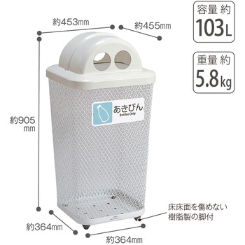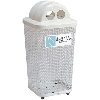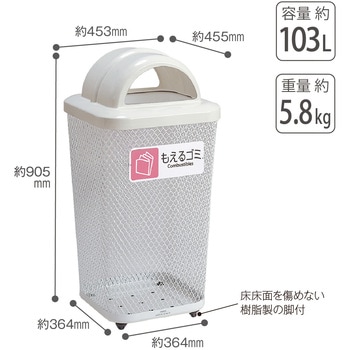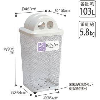中身を確認しやすい網目仕様。床面を傷めない樹脂製脚付。分別用蓋と分別プレートがセットになったお得な屑入です。