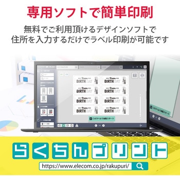 エレコムのラベル作成ソフト「らくちんプリント」を無料ダウンロードすると、簡単にデザイン・印刷が可能です。