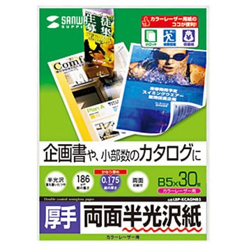 表も裏も反射を抑えた、深みのある自然な光沢感のカラーレーザー専用紙です。写真画像も文字も美しい仕上がりです。 0.175mmとしっかりとした厚みです。 両面に印刷できるので、写真を使った企画書やカタログに最適です。<カラーレーザープリンタ専用設計だからココが安心> トナーの転写率が良好で常に安定した印字が得られます。 用紙間の摩擦係数を低減させており、重送や空送など給紙ミスの起こりにくい安心設計です。 一般紙で出やすい画像部分の光沢ムラや光沢低下、画像部分の膨れや爪あとのようなキズができにくくなっています。