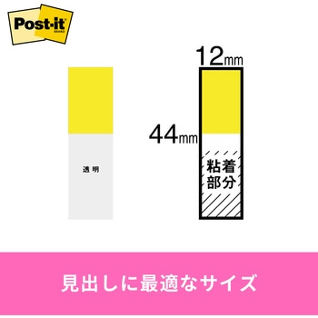 カレンダーでの現場管理に使用しています。半透明で下の文字が透ける為、カレンダーの文字や罫線が見えるので便利です。太さは1.2センチの長さ4.3センチですので、手帳などにも折らずに張れます。サイズが小さいので、文字を書き込もうとする人には不便かもしれません。私の場合は使ってみて便利なので再度購入いたしました。1枚取るたび、はがしやすいように非粘着面が出てくるのでおすすめです。