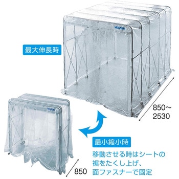 長期間保管する資材置場のホコリよけとして、また飛散を伴う作業・機械の専用ブースとしてなど、簡単に隔離された空間を作ることができるブースです。