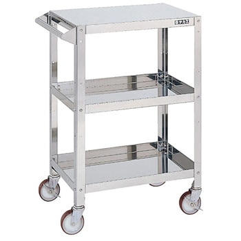 「支柱突き合わせ方式」により、ぐらつきが無く非常に堅牢です。SUS304製ですのでサビや汚れに強いワゴンです。棚板はすべて皿型・フラット型に組み替えが可能です。