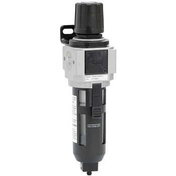 圧力計付(広い視野角が良い)で、オートドレン付樹脂カバー付ボトル・ロック付ノブ・ドレンポートにフィッティング使用…と使いやすい要素がてんこ盛り。但し、添付取付ブラケットに対して、本体の「回り止め」構造が無いので、この部分は減点。ここまでしっかり出来ているのだから、ブラケット~本体の組み立て構造にも改良を加えてほしい。