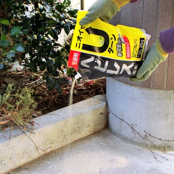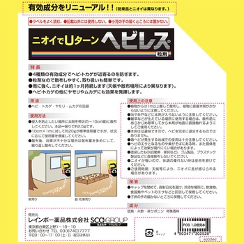 特殊な臭いでヘビ、トカゲ、ムカデ等を寄せつけない忌避剤です。木酢酸、ナフタリン、硫黄のトリプル効果に特殊忌避剤をプラスした粒剤なので散布しやすく、取り扱いも簡単です。水に溶けない忌避剤で、効果も長く、庭・花壇の周りにも使えます。