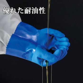 耐油性に優れた塩化ビニール手袋です。裏布は縫い目のないシームレス編手で手触りがよく、使い心地がよくなっています。指、手のひらにスベリ止め加工を施しているため、グリップ性に優れています。イヤなにおいを抑える抗菌防臭加工を施しています。