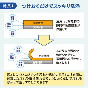 ●こびりつき汚れを浮かせて落とす、粉末タイプの強力つけおき洗浄剤です。