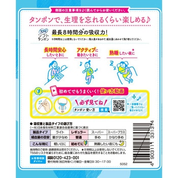 最長8時間※分の吸収力で、生理中でも思いっきり楽しめちゃう♪●指先サイズの吸収体で、最長8時間※分の吸収力を実現。●体の中の無感覚ゾーンで吸収するので、使用中の違和感から解放。さらにムレも気にならない。●アプリケーターにハートの目印が付いていて、押し出し位置が分かりやすい。吸収体を正しい位置に挿入しやすい。<以下注釈>※8時間以上使用しないでください。個人差があるので、経血量にあわせて取り替えてください。