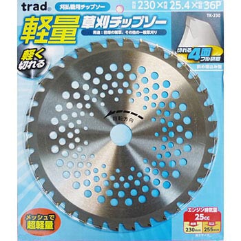 メッシュで超軽量。軽く切れる。メッシュ軽量で切れ味が軽い。衝撃に強い、完全埋込み型。タフなチップなので耐久性抜群。田畑の雑草・その他の一般草刈り。斜め埋込み型。切れる4面フル研磨。