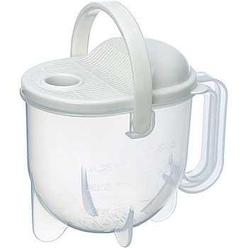片手が痺れているので、少量のお米を研ぐことが出来なくて、困っていたのですが、この米研ぎ器を妹が探してきてくれて、使用していたのですが、上蓋と、下の受け部との接合が弱くなって、研いでいるときに上蓋が外れてしまって、同等品をネットで探していたのですが見つからなかったですが、御社で取扱っている事を知って今回購入しました。小判型でなく丸型の方が、接合に強いのではと思うのですが、丸型の商品は、無いのでしょうか?