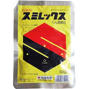 ジカルボキシイミド系の殺菌剤です。作用機作は細胞壁の合成阻害と考えられています。ハウス内の湿度を高めないので、多湿を好む病害の発生を助長しません。薬剤処理は、液剤散布より短時間で済み省力的です。