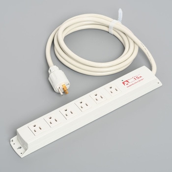 15A安全ブレーカ付 6コ口抜け止め接地コンセント VCTF5m接地プラグ付