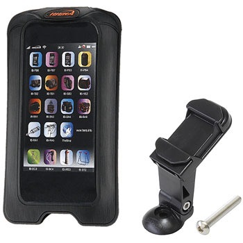 5インチ※までのスマートフォンに対応したスタンダードサイズ(※5インチモデル一部不可)クリアカバーでスマートフォンを入れたままタッチスクリーンの操作が可能ステムボルト上に固定する専用ブラケットで、スマートフォンの見やすさが抜群ブラケットへは縦向き、横向きの固定が可能で、脱着も簡単