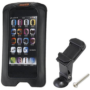 IB-PB12より縦横9mmサイズアップして、さらに様々なスマートフォンに対応クリアカバーでスマートフォンを入れたままタッチスクリーンの操作が可能ステムボルト上に固定する専用ブラケットで、スマートフォンの見やすさが抜群ブラケットへは縦向き、横向きの固定が可能で、脱着も簡単