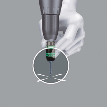 ユニバーサルビットホルダです。「ラピダプター」システムにより、片手で簡単にビットの挿入、取り外しができます。マグネットリング内蔵です。