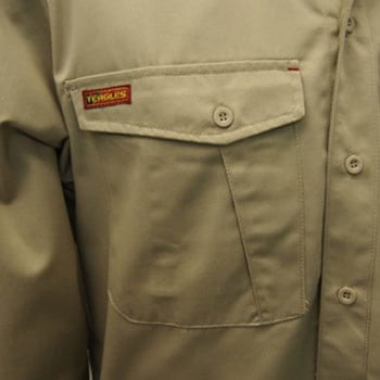 両胸にペン差し、ファスナー付ポケット。左袖にペン差しが装備されています。