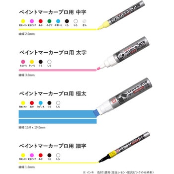 モノタロウで購入できるピンク色のマーカーペンを4種購入して比較した。ペン先を押し込んだ後使い始められるまでの時間、書き心地、発色、いずれも高レベルであったため、これを選んだ。