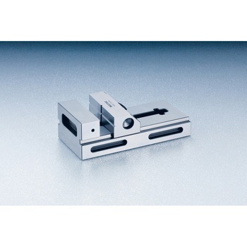 SKS-3を全面焼入(HRC62°)し、各面の直角度、平行度を精密研削仕上げしてあります。ホールダウン式クランプの為、チャック時のワーク浮き上がりがありません(PVシリーズ)PV-20バイス口金部には1.5mm幅のサブ溝が施してあり、特に小さいワークの研削や投影測定の際、ワークの下に補助ロックを支える必要がありません。
