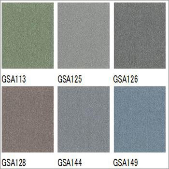 材質(パイル)BCFナイロン100%パイル長(mm)3.5(ループパイル)防炎性能試験番号EO830368寸法(mm)500×500シリーズGA-100SA加工フッ素系樹脂による防汚加工材質(基布)ポリエステル不織布材質(バッキング)塩ビ樹脂+ガラス繊維布工法全面接着工法(接着剤エコGAセメント)ホルムアルデヒド等級F☆☆☆☆塗布量40~60g/m2(スチール・プラスチック・塩ビタイル)、60~100g/m2(モルタル・木造床(合板など))ステッチ13全厚(mm)6.5人体帯電圧(kV)0.5以下(JIS L 1021-16 25%RH 合成ゴム底)